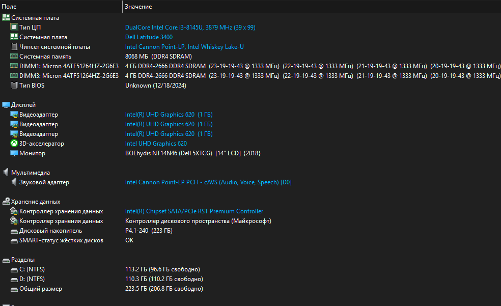 Графика встроенная в процессор: Intel UHD Graphics 620
